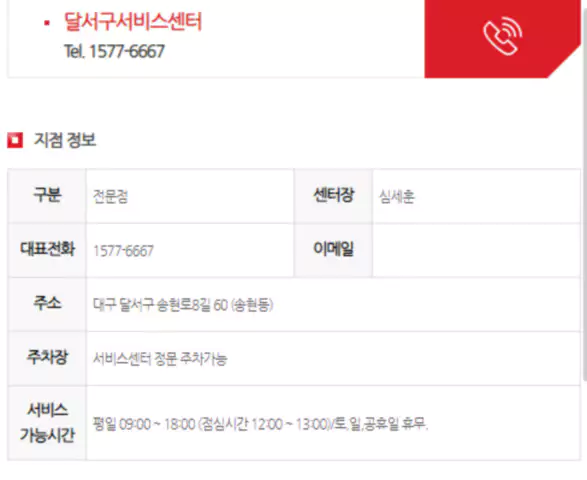달서구서비스센터에 대한 상세한 정보를 확인할수가 있습니다