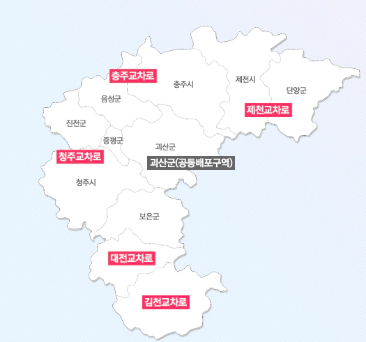 충북은 충주교차로, 청주교차로, 제천교차로, 대전교차루, 김천교차로 운영중입니다