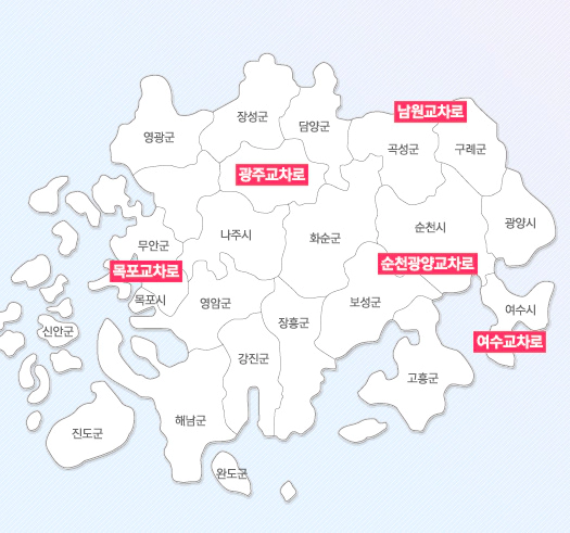 전남은 광주교차로구익구직, 남원교차로, 목표교차로, 순천광양교차로 , 여수교차로 등이 운영하고있습니다