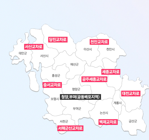 충남은 서산교차로, 당진교차로, 천안교차로, 충서교차로, 공주세종교차로, 세종교차로, 대전교차로, 백제교차로, 서해군산교차로가 운영중입니다
