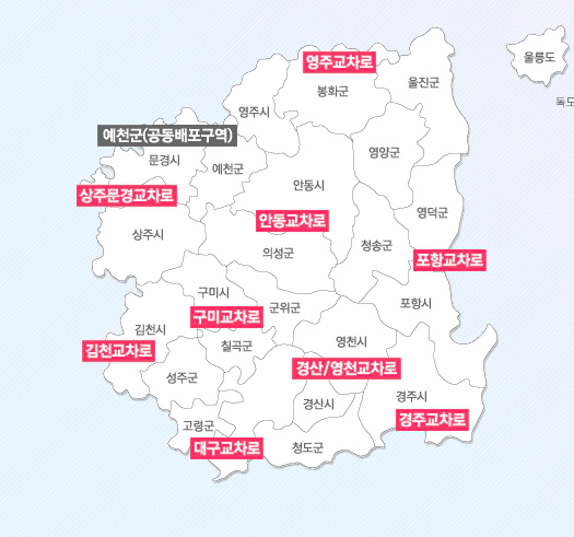 경북은 영주교차로, 상주문경교차로, 안동교차로, 포항교차로구인구직, 김천교차로, 구미교차로구인구직, 경주교차로, 대구교차로구인구직 등이 운영중입니다