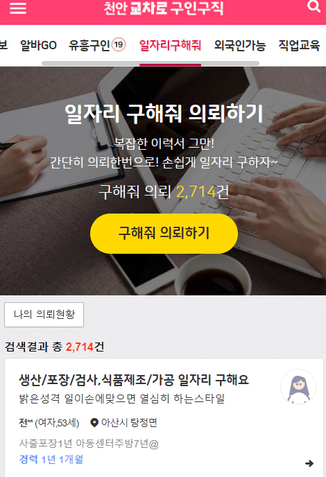 천안교차로 구인구직 게시판은 대상별 구인으로도 확인이 가능합니다