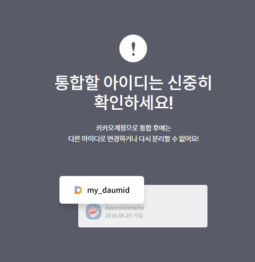 만약 여러개 아이디를 사용중이였더만 통합할 아이디를 신중히 선택하셔야 합니다