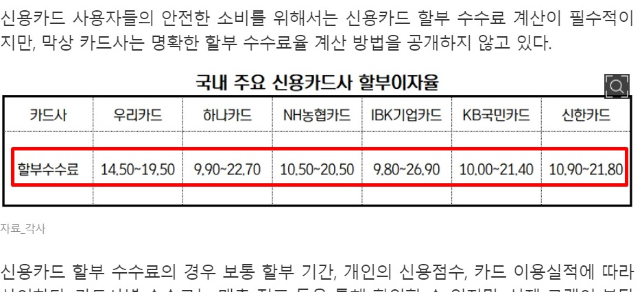 각 카드사별 할부수수료율을 모르신다면 아래 이미지를 확인하세요