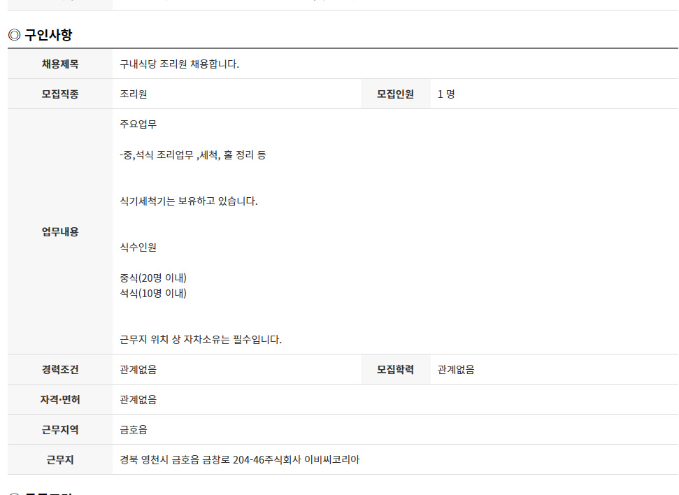 먼저 위의 당부 내용을 확인바랍니다 영천시청 구인구직 게시판은 시민여러분의 자율적 참여로 운영되고 있습니다 구인 및 구직활동에 많은 도움을 주고 있지만 간혹 피해를 입는분들이 있습니다