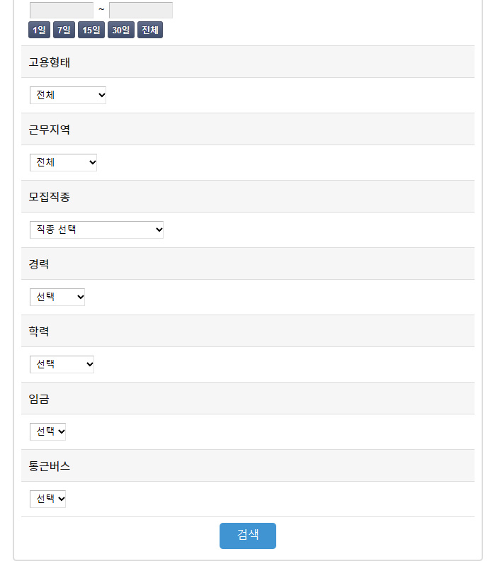 구직을 위해서는 채용정보 검색을 통해서 최근날짜까지 등록이 되어 있는 구인정보를 확인이 가능합니다
