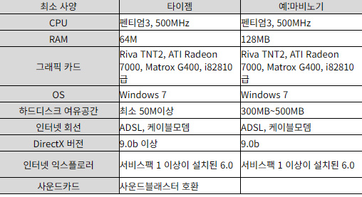 타이젬 바둑 pc 설치 사양입니다 아래 최소 사양과 권장사양을 확인하시기 바랍니다 바둑이라는 단순 게임이기때문에 컴퓨터 권장사양은 그렇게 높지 않습니다