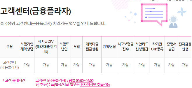 자세한 사항은 흥국생명 고객센터를 통해서 확인 바랍니다