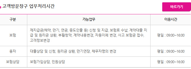방문을 통한 서비스는 아래와 같으면 꼭 이용시간을 미리 확인을 해주시기 바랍니다 금융플라자를 통해서 보험, 융자, 보험상담 서비스를 받으실수 있습니다 이용시간은 평일 9시부터 16시까지 이용이 가능합니다